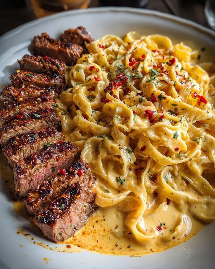 Steak spaghetti is a hearty dish that pairs tender, juicy steak with perfectly cooked pasta. The rich flavor of the beef, combined with garlic, herbs, and a savory sauce, makes it a satisfying and comforting meal.