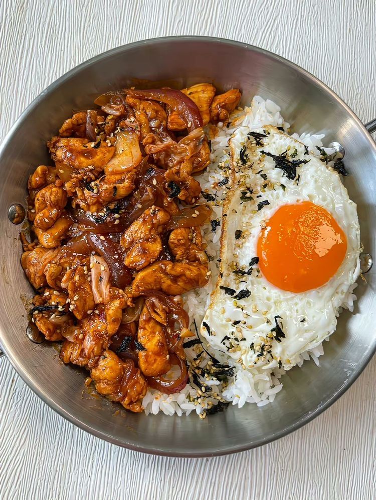Rice with diced beef, creating a hearty and satisfying meal. The beef is often marinated for added flavor, then sautéed or braised until it’s perfectly cooked and infused with spices or sauces like soy sauce, garlic, and ginger.